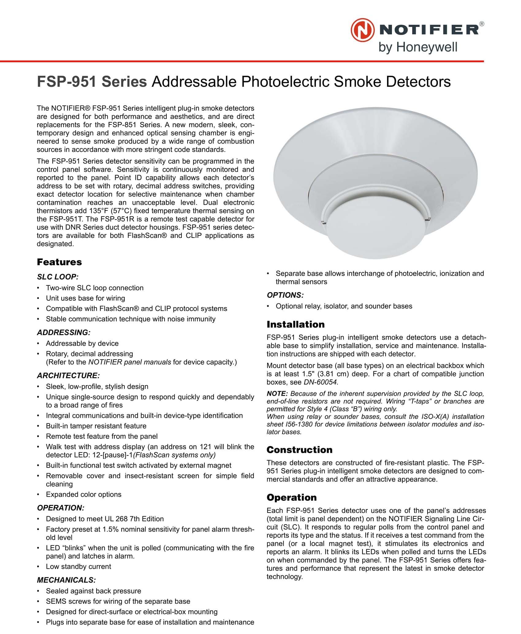 FSP-951 Series Smoke Detectors เครื่องดับเพลิงมาตรฐาน ระบบดับเพลิงอัตโนมัติ อุปกรณ์ควบคุมระบบแจ้งเหตุเพลิงไหม้ ระบบโฟมดับเพลิง ระบบดับเพลิงในห้องครัว หัวสปริงเกอร์ บริษัท ไอแซค มาร์เก็ตติ้ง จำกัด